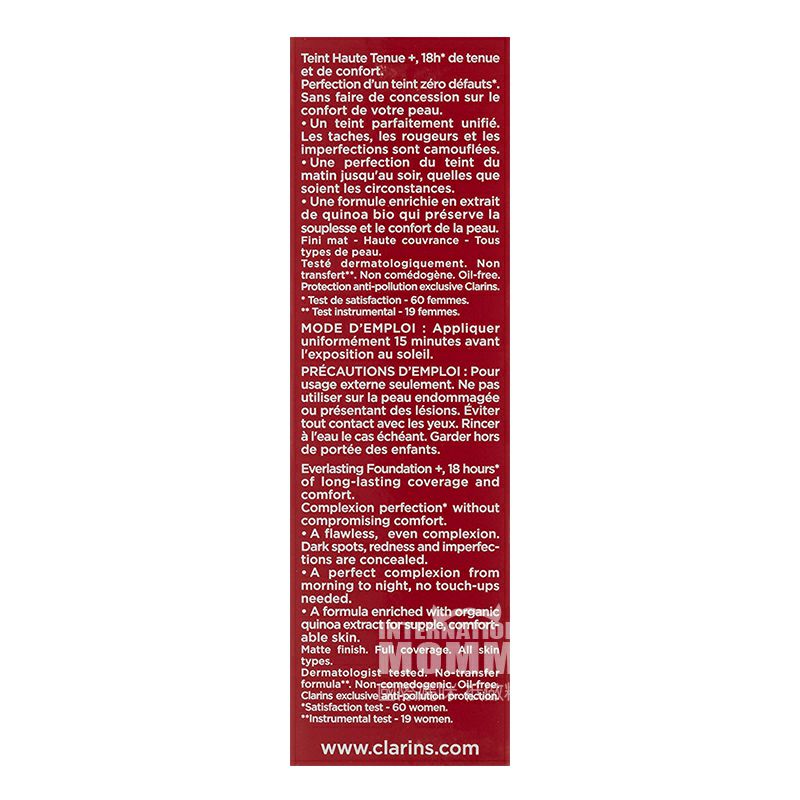 Parameters 產品參數 淨含量:30ml 顏色:108 sand沙色 適用膚質:所有肌膚 使用方法:按需要使用 注意事項: 1、請勿將其放置在兒童可觸及的地方; 2、請存放於避光、乾燥處; 3、如產品不慎入眼,請立即用大量清水沖洗乾淨。 銷售地:France/法國 品牌:CLARINS/嬌韻詩 |