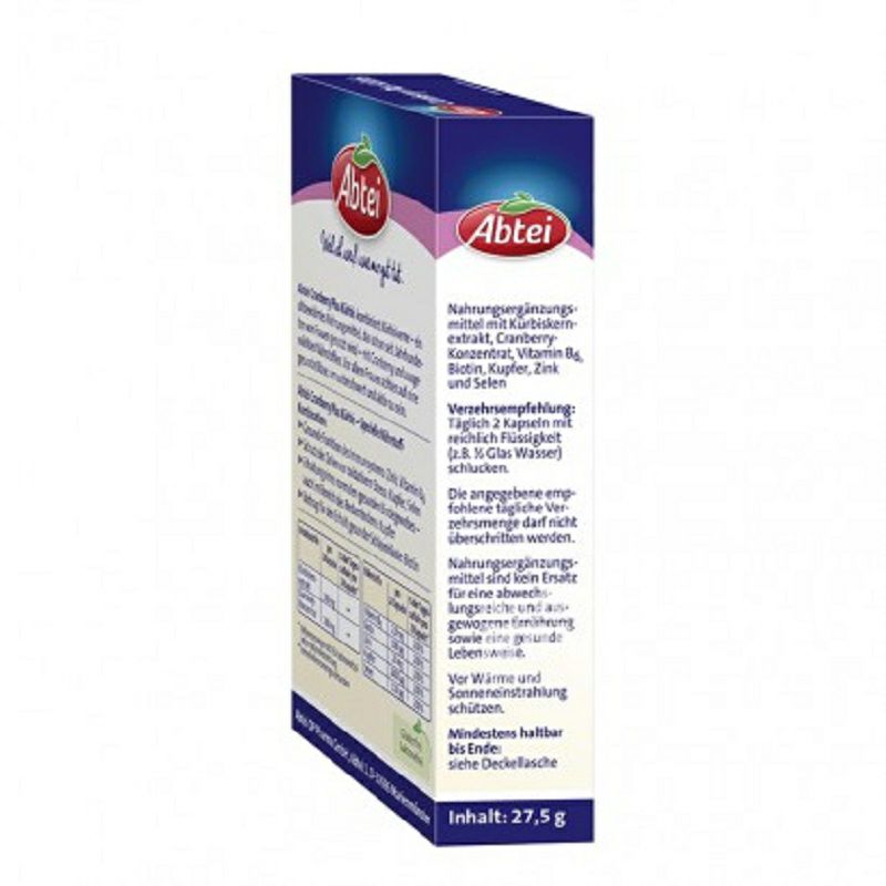 產品參數 主要成分:南瓜種子,蔓越莓,鋅,硒和B族維生素。 規格:30粒/盒 適用人群:成年女性 服用方法:早晚飯後各服用一粒,溫水送服。 注意事項: 1、膳食補充劑不能代替均衡和多樣化的飲食和健康的生活方式。 2、推薦的每日劑量不應被超過。 3、請將本品放在兒童不能接觸的地方。 4、存放在乾燥,陰涼處。 原產國:Germany 品牌:Abtei |