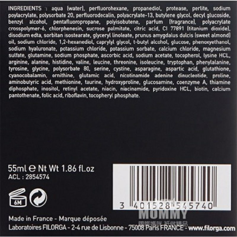 Parameters 產品參數 淨含量:55ml 適用人群:所有肌膚 使用方法:均勻塗抹於臉部,輕輕推開,面膜會變成泡沫狀,等待泡沫消失之後用清水洗淨,配合乳液面霜使用。一周1-2次即可。 注意事項: 1、請勿將其放置在兒童可觸及的地方。 2、請存放於避光、乾燥處。 3、如產品不慎入眼,請立即用大量清水沖洗乾淨。 銷售地:France 品牌:Filorga |