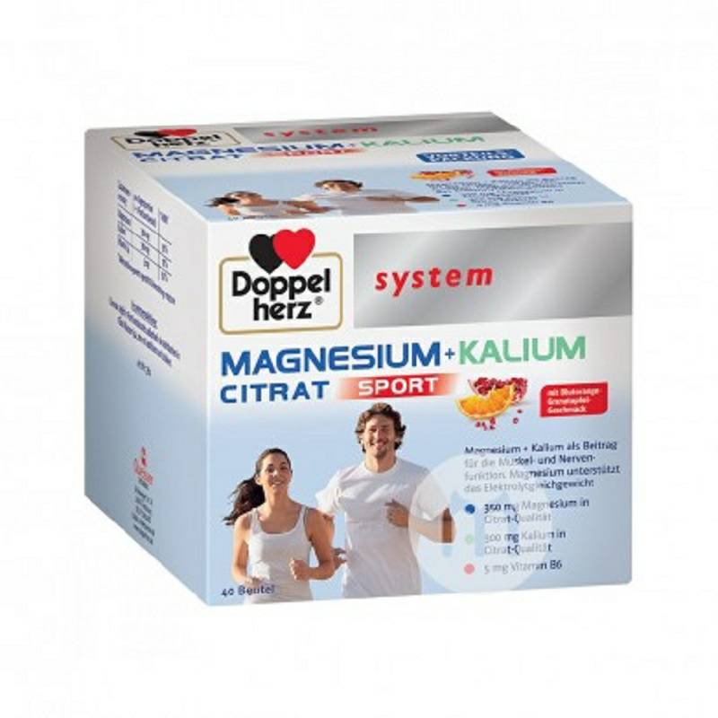 產品參數 成分:檸檬酸鎂,異麥芽糖醇,檸檬酸,檸檬酸鉀,碳酸氫鈉,香料,紅甜菜汁粉(麥芽糊精,著色甜菜根汁濃縮物),甜味劑甜蜜素和糖精鈉,鹽酸吡哆醇(維生素B6),核黃素5-磷酸。 適用人群:成人 規格:40袋/盒 使用方法:每天1袋,將小袋中的內容物放入空玻璃杯中,加入約200毫升水並短暫攪拌。 注意事項: 1、本品不宜超過推薦量或與同類營養補充劑同時食用; 2、請勿將其放置在兒童可觸及的地方; 3、請存放於避光、乾燥、不高於25攝氏度的地方; 4、本品為膳食營養補充劑;本品不能代替藥物; 5、患有腎臟或心髒病的人在使用本產品前應諮詢醫生。 銷售地:Germany 品牌:Doppel herz |