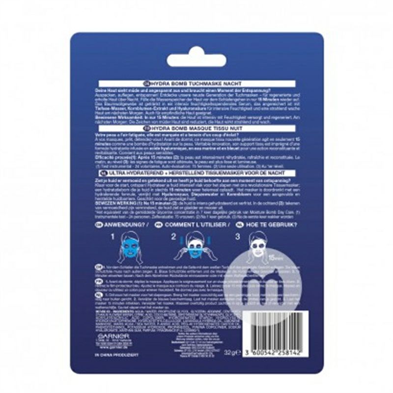 產品參數 成分:水、丙二醇、精氨酸、矢車菊花水、檸檬酸、甜菜鹼、甘草酸二鉀、丙烯酸甘油酯、丙烯酸共聚物、氫化澱粉水解物、羥基苯、羥乙基纖維素、薰衣草月季油、茴香酸、氫化蓖麻油、苯氧乙醇氫氧化鉀、透明質酸鈉、黃原膠、香水、香薰 適用膚質:任何肌膚 規格:1片 淨含量:32g*10 使用方法:打開包裝,取下藍色面膜布,將面膜調整到合適的臉部輪廓,15分鐘後取下,將精華用化妝棉擦拭乾淨即可 注意事項: 1、請勿將其放置在兒童可觸及的地方; 2、請存放於避光、乾燥處; 3、如產品不慎入眼,請立即用大量清水沖洗乾淨。 銷售地:France 品牌:GARNIER |