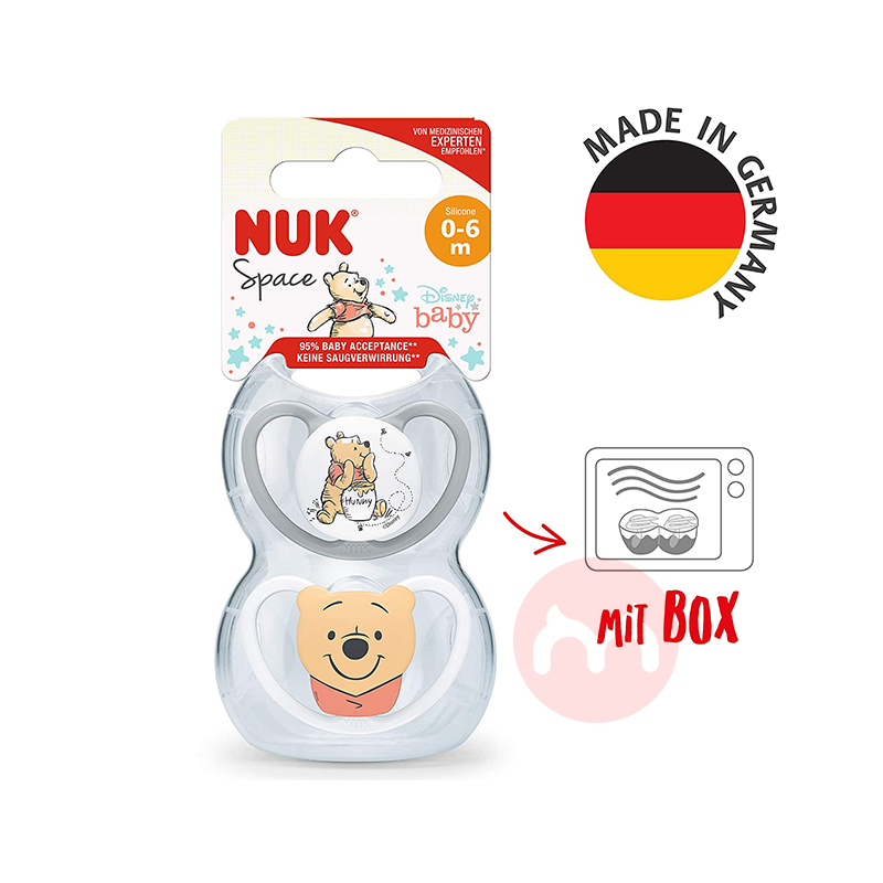 NUK 德國NUK矽膠安撫奶嘴Space系列0-6個月兩只裝維尼熊 海外本土原版