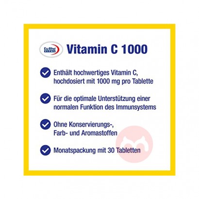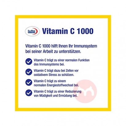 Features 產品特點 1、含有1000毫克優質維生素C。 2、為免疫系統的正常功能提供最佳支持。 3、不含防腐劑、色素和調味劑。 4、來自德國的實驗室測試質量。