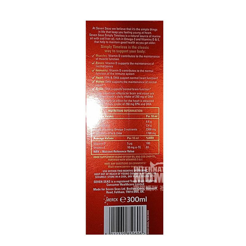 Parameters 一般產品信息 產品特點 1. 增進食慾; 2.有助於骨骼強健; 3. 健固牙齒; 4. 助護皮膚健康; 5. 滋養神經系統; 6. 補充因消化不良而引起的不足的營養。 功能概述 1. Omega-3:有助於心血管健全,解除關節酸痛不適,增進專注力,舒解壓力,消除偏頭痛,令皮膚煥發青春健康。 2. 維生素D:組成和維持骨骼的強壯,有助於鈣的吸收。 3. 維生素A:維持正常視覺功能,有利於免疫球蛋白的合成,維持骨骼正常生長發育。 4. 維生素E:保護皮膚免受紫外線和污染的傷害,減少疤痕與色素的沉積。 5. 煙酰胺:防治糙皮病等菸酸缺乏症。 6. 維生素B2:促使皮膚、指甲、毛髮的正常生長。 主要成份 每100ml魚肝油: 魚油EPA:9.2克 Omega-3營養素EPA和HPA:2450毫克和1900毫克 維生素A:800微克 維生素E:10毫克 維生素D3:5微克 煙酰胺 維生素B2 使用方法 超過15歲成年人,每天10毫升(2茶匙); 超過11歲的青少年,每天5毫升(1茶匙); 可以和牛奶或橙汁混合在一起飲用。 注意事項 1. 本品不宜超過推薦量或與同類營養補充劑同時食用。 2. 請勿將其放置在兒童可觸及的地方; 3. 請存放於避光、乾燥、不高於25攝氏度的地方; 4. 本品為膳食營養補充劑;本品不能代替藥物。 5. 孕婦服用本產品前,請諮詢醫師或藥師。 淨含量 300毫升 原產國 英國 生產企業 Seven Seas 七海 |